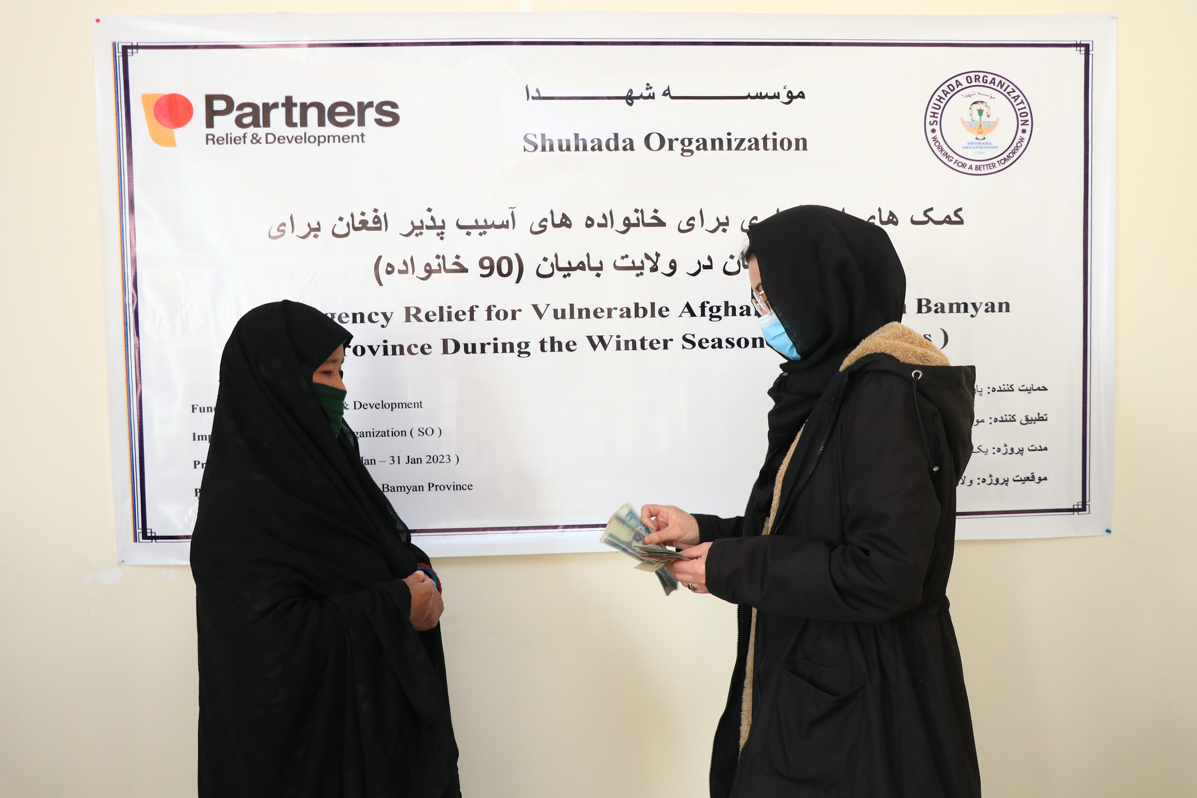 On Sunday, 22 Jan 2023 the Shuhada Organization (SO) with the financial support of Partners Relief and Development implemented an emergency relief project in the center of Bamyan province and distributed cash for 90 vulnerable Afghan families who were already surveyed, listed and identified.